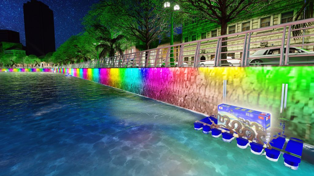 Mô phỏng 3D lắp đặt thiết bị công nghệ Bio-Nano lắp đặt tại Hồ Tây để xử lý, đảm bảo tình trạng cá chết tại Hồ Tây sẽ không bị tái diễn.