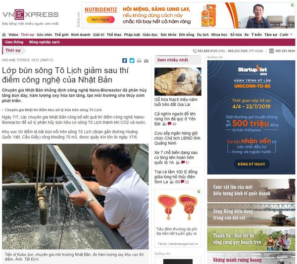[BÁO VNEXPRESS.NET] Lớp bùn sông Tô Lịch giảm sau thí điểm công nghệ của Nhật Bản