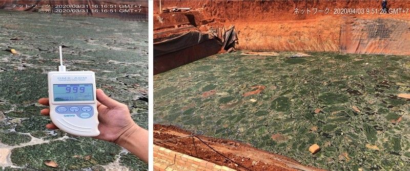 Ảnh sau xử lý 2 tuần, toàn bộ lượng chất hữu cơ váng xanh đã bị phân hủy.